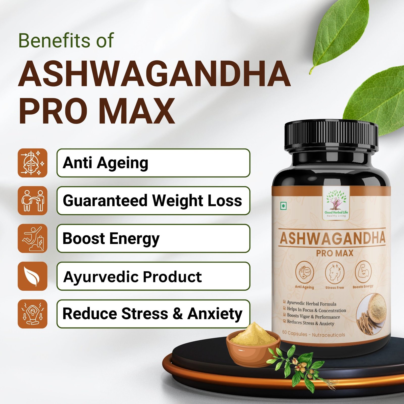 Good Herbal Life Ashwagandha Pro Max – Natural Ayurvedic supplement to reduce stress, enhance energy, improve focus, and support overall vitality. FSSAI-approved.